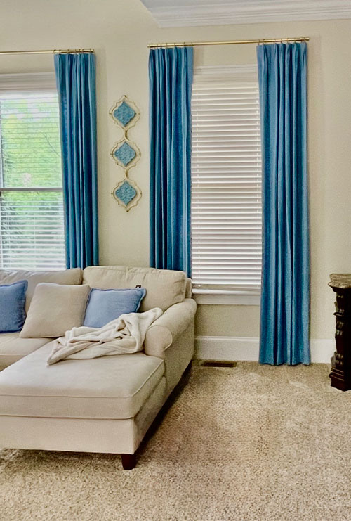 I’m Jan Britt, my team and I work with homeowners and businesses in the surrounding Atlanta area. We help our clients choose the right window treatments/curtains for their windows and doors—from style and fabric to function and hardware. Proper measuring is so important to have professional results.